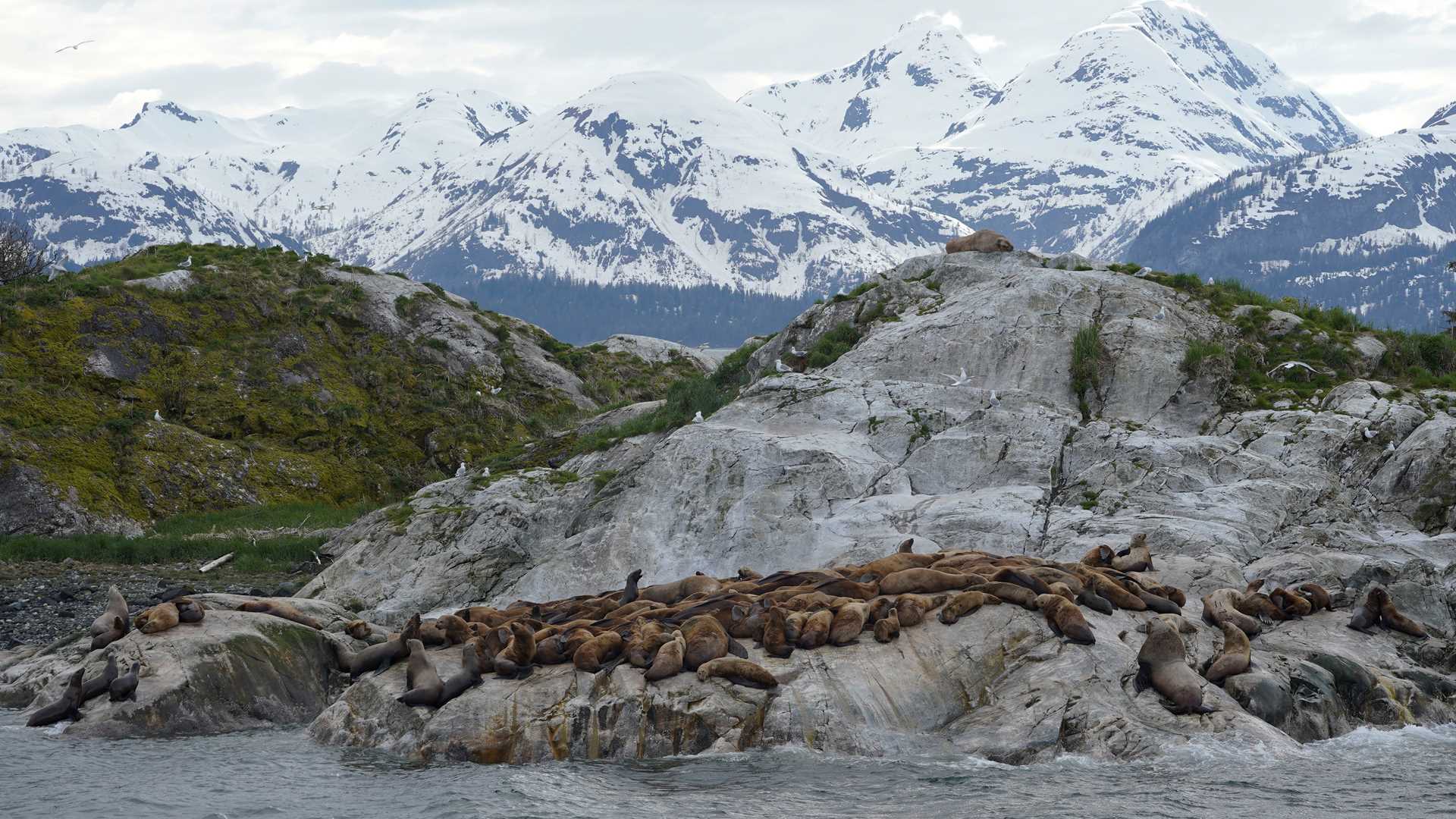 Sailing south, we turned into Johns Hopkins Inlet to see Lamplugh Glacier. We observed the Johns Hopkins Glacier from Jaw Point. After lunch, we sailed southbound looking for wildlife. At Gloomy Knob, we saw mountain goats, Steller sea lions, humpback whales, and a couple tufted puffins. South Marble Island offered us even closer views of Steller sea lions, several sea otters, and a lot of birdlife.
