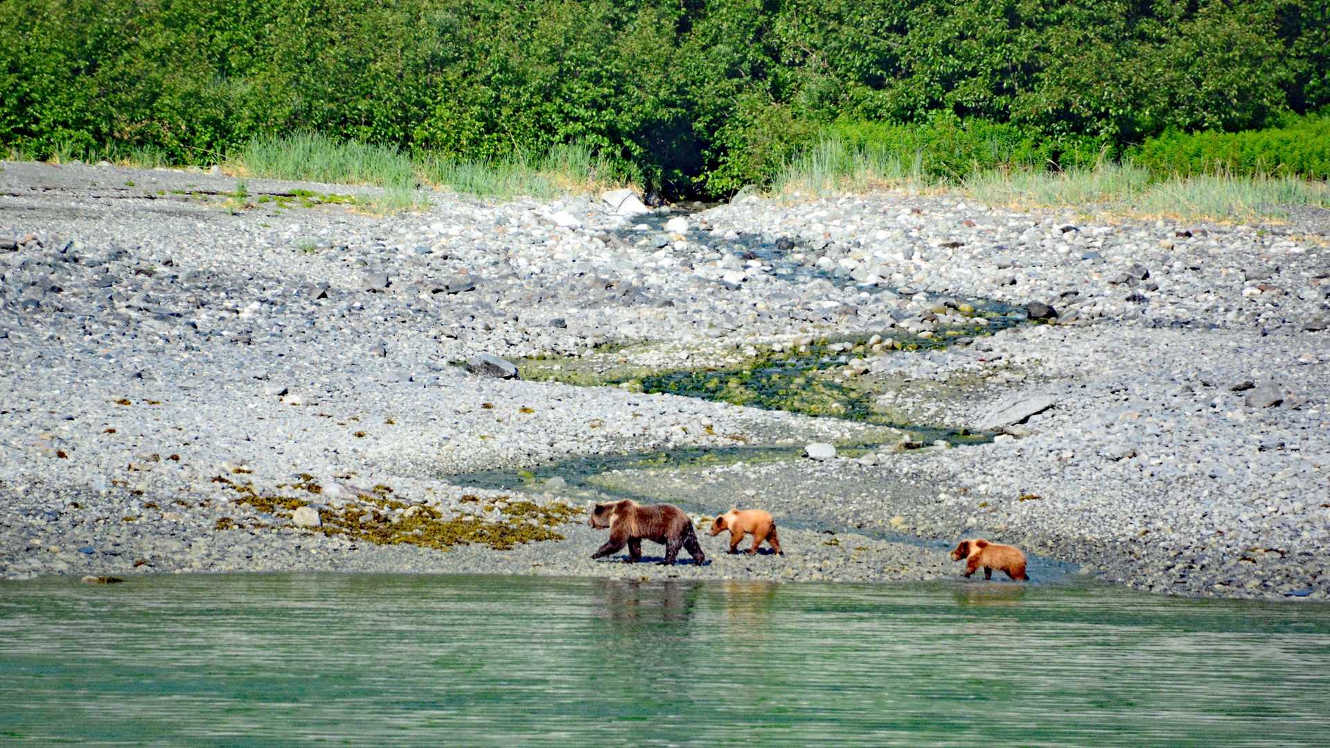 We counted seven brown (grizzly) bears in total today – a mother with her two cubs, two associating adults of unknown relation, and a couple of solo individuals. Observing from the ship offers safety, great viewing, photo opportunities, and most importantly, it doesn’t disturb the bears. It presents us with a brief glimpse into the lives of these iconic wild animals.