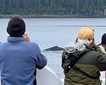 As we continued to skirt south, our first stop was at a sheer rock wall called Gloomy Knob. A healthy population of mountain goats make their home on the steep cliffs of Gloomy Knob. Through a light rain, a total of four mountain goats were found. As the icing on the cake, we visited South Marble Island before exiting the park. We always find a haul out of sea lions there, but there was no way we could have predicted what happened next. At one point, our boat was surrounded by tufted puffins while a mother otter paddled by with a baby. A long black fin approached from behind. It was a killer whale, giving us a send-off as we left the park. While all mammals made it out alive, it was a very intense moment for the mammals on board, as well as those off.