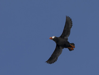 Glacier Bay is approximately 65 miles long, from the point where it opens into Icy Strait, all the way to the face of the Grand Pacific Glacier. The lower part of the bay has not been glaciated in a very long time and provides ample opportunity for wildlife viewing. Our first stop was at a smooth, rocky islet called South Marble Island. Home to numerous species of nesting sea birds, South Marble is a veritable ornithological goldmine. Some of us had our first experience with tufted puffins, common murres, pelagic cormorants, black-legged kittiwakes, and plenty of other species. The Steller’s sea lions draped over the polished rocks were languishing in the sunshine of the early morning.