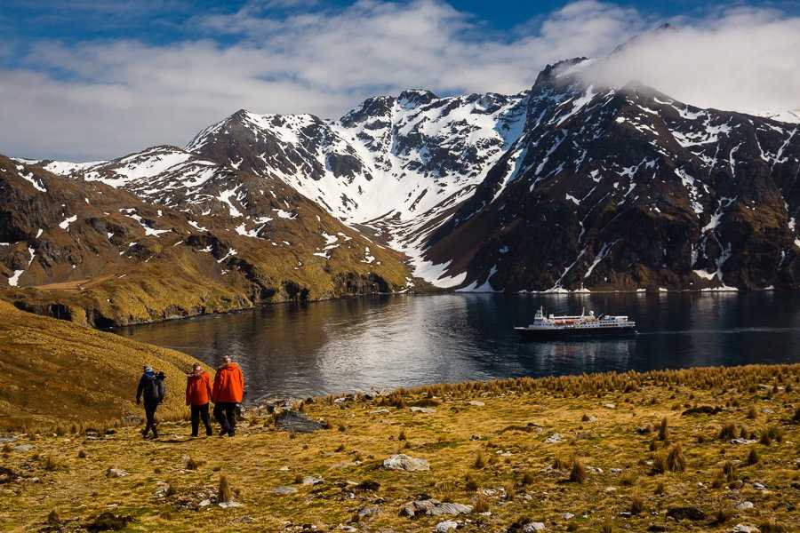The morning started with our departure from Stromness Harbour at 0600 hours sailing south-east towards Godthul Harbour. As we sailed along the coast much of South Georgia’s beauty was hidden under low clouds, with only the tallest peaks showing occasionally above the cloud level. Once inside Godthul Harbor the clouds cleared away and we enjoyed sunshine and clear skies.