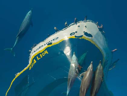 We awakened this morning, our first aboard the National Geographic Sea Lion, to a beautiful sunrise, followed by a couple of humpback whales feeding, and then common dolphins riding the bow.  Wow!  People made their way to the decks of the ship to see these amazing cetaceans gracefully cut through the water, ride the bow, and leap high into the air.  They soon departed, but towards the end of our light exercise class another group of dolphins – this time bottlenose dolphins - came to welcome us to their home.   “Bienvenidos a Mexico!” they seemed to say with each leap and tail-slap and zip to the bow for a free ride.  Well, probably they were feeding and not paying too much attention to us.  However we did notice when the Captain stepped on the gas, they sped up as well, and began leaping and bow-riding with more gusto.  There must have been a couple of hundred dolphins; we were told that for every one seen on the surface there are likely 3 or 4 more below.  The tiny babies were so cute (as are all babies).  And we saw a huge remora hanging off the side of one of the dolphins, getting a free ride to its meal.  Speaking of meals, it was now time for breakfast!