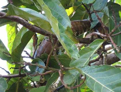 After navigating to the upper corner of the gulf, the anchor was dropped again for our morning activities: kayaking and Zodiac rides in the Esquinas River. Either on a peaceful self-adventure kayak trip or in the Zodiacs with our naturalists explaining what we were seeing, the views of little blue herons, cattle egrets, white ibis, parrot, kingfishers were all around us. But not just birds were spotted; with the help and sharp eyes of our Zodiac drivers we saw four tree boas, a couple of green iguanas, basiliks and a medium-size crocodile.