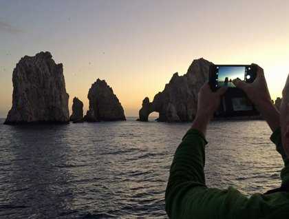 Back on board we gathered in the lounge for a talk on whales, while the ship made her way down to the tip of the peninsula and the 100-million-year old granite rocks and famous “el Arco” arch. We arrived just before for sunset—and had great views from the bow of the green flash while the hotel staff provided cocktails and appetizers. At this writing the ship is making her way around the peninsula and the winds are picking up. Time to batten down the hatches for an adventurous night ride.