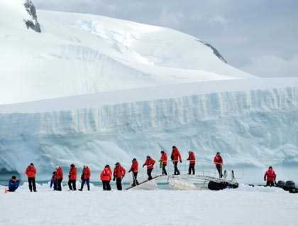 This was a day to get bitten by the Polar Bug! We woke up to the most beautiful sunrise as we were cruising the southern parts of the Grandidier Channel, we zig-zagged with Zodiacs in a world of huge icebergs, we watched penguins and seals up close, we plunged into water near the freezing point, and we even got to step onto fast ice in the late afternoon!
