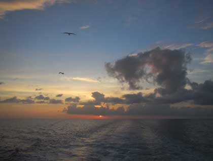 Sunrise greeted the few early-risers from our stern this morning while still underway to Granito de Oro, our morning exploration area located in Coiba National Marine Park.  This large park is renowned for its forested islands but also includes sizeable extensions of fringing reefs and submerged seamounts and is recognized as a world biosphere reserve.