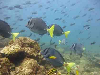 The weather was perfect for snorkeling, swimming or kayaking. Once on shore, each guest went to explore as they wished. With their snorkeling gear, they slowly submerged in the crystal waters. Their eyes were filled with the colorful fish that swam around them, careless of their presence. Big schools of chancho surgeonfish, big-eyed jacks, spotted rose snappers, Moorish idols, king angelfish and many others had gathered in these waters since it has the second largest coral reef of the tropical Eastern Pacific.