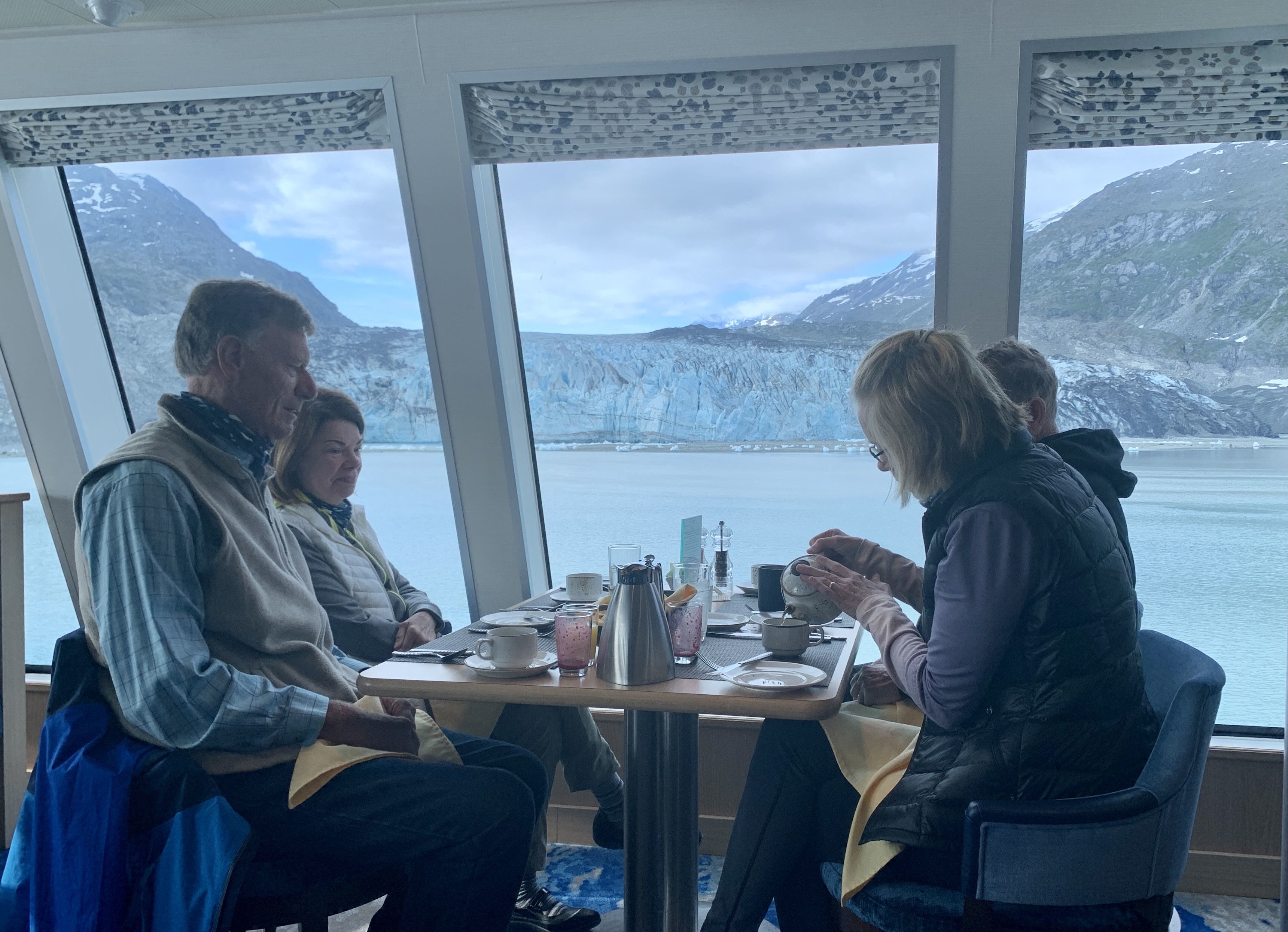 Today we woke up to a gorgeous day here in Southeast Alaska aboard National Geographic Sea Bird . The waters were glass calm as we enjoyed a delicious breakfast. Right as we were finishing up, the bridge spotted a lone male orca swimming around us. We all went out on the bow and were able to see the massive six-foot dorsal fin of the world’s largest dolphin species as it swam around the ship. After we watched this majestic creature fade into the distance, we began our sail up the breathtakingly beautiful Endicott Arm fjord. This area is hard to put into words. We sailed past icebergs with granite walls rising 3,000 feet out of the water directly on either side of the vessel. Waterfalls cascaded down from hidden snowfall and hanging glaciers. Glacial silt coming from the rock flows and mixes with the sea, creating a beautiful green hue in the ocean. Shayne, our Certified Photo Instructor, gave a presentation on smartphone photography and taught us all the settings for these incredible devices. It could not have come at a better time as the Dawes Glacier came into view. After a wonderful lunch, we headed out in our expedition landing crafts to explore the ice field in front of the glacier. Being this close to icebergs and the face of an active tidewater glacier is life changing. The blue of the ice, the crackling of icebergs, the haul outs of harbor seals, and the crash of calving is an experience that will not soon be forgotten. Back on the ship, we were treated to yet another amazing meal before heading into the lounge for a dual presentation by Naturalist Frankie Wilton and Certified Photo Instructor Shayne Sanders. They taught us about "The Story of Southeast Alaska" by talking about the important forest ecology and how to incorporate composition to capture this magic through the lens. It was an amazing first day, and we cannot wait for what is to come.
