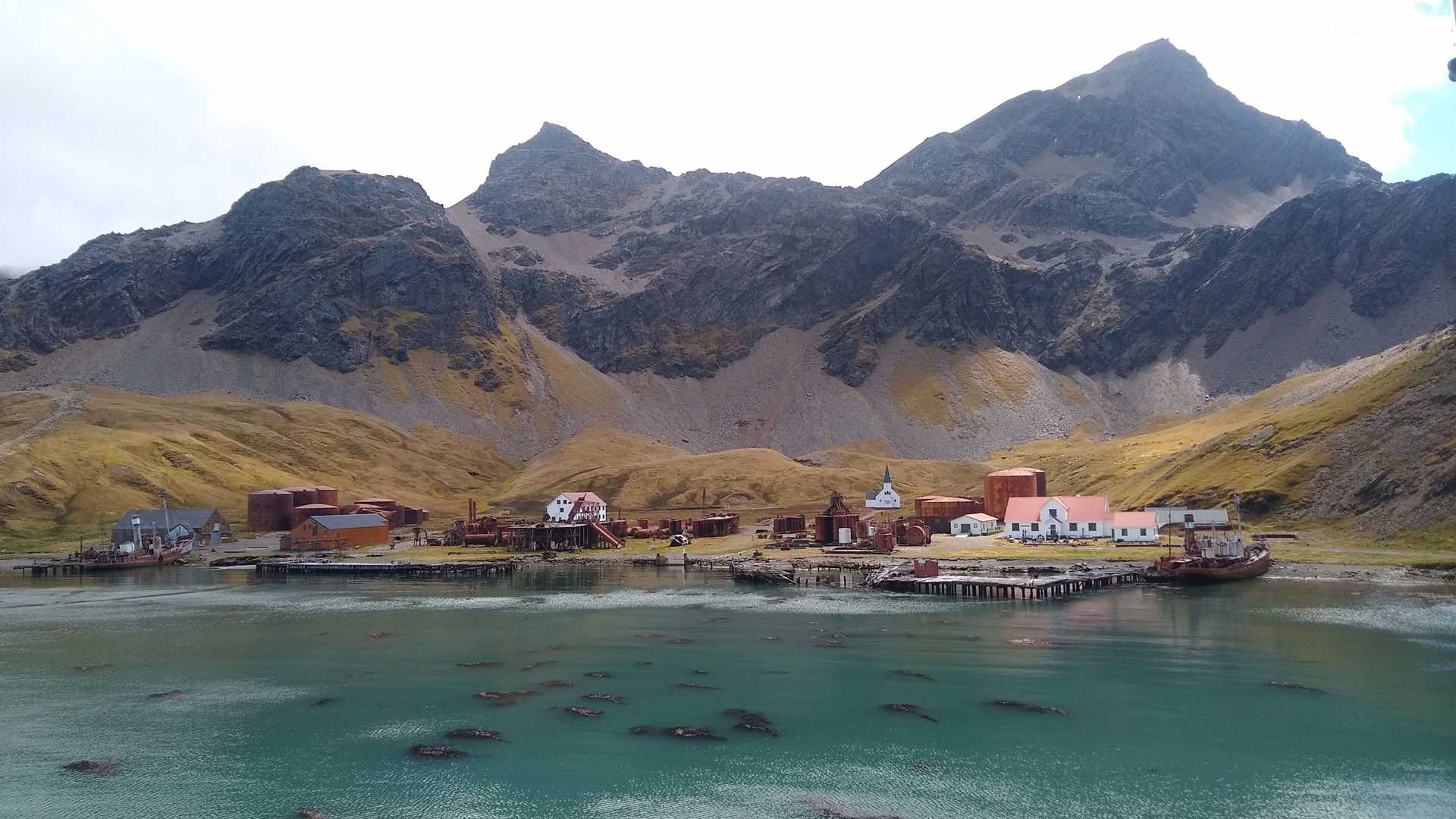 After lunch, we entered Grytviken which provided us with a respite from the weather. We sailed passed the graveyard where Sir Ernest Shackleton’s final resting place is marked with a stone pillar. This provided us with the opportunity to share a dram of whisky and toast to his life’s achievements and legacy. As we approached the historic settlement, we witnessed the remnants of the first whaling station established in South Georgia at the beginning of the 20th century, with many structures and buildings still standing. The Zodiacs of National Geographic Explorer were lowered onto the water so we could take a closer look at the place and the wildlife that nowadays thrive in the area. The wind picked up again just in time for us to return to the ship and start our departure from South Georgia towards the Falkland Islands.