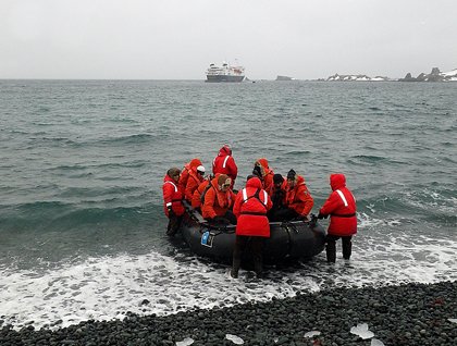 Half Moon Island was the logical place to visit as a first landing due its richness in wildlife. The southern part of the island concentrates a population estimated at 3,300 pairs of nesting chinstrap penguins and several other species of birds, such as Antarctic terns, skuas, and kelp gulls.