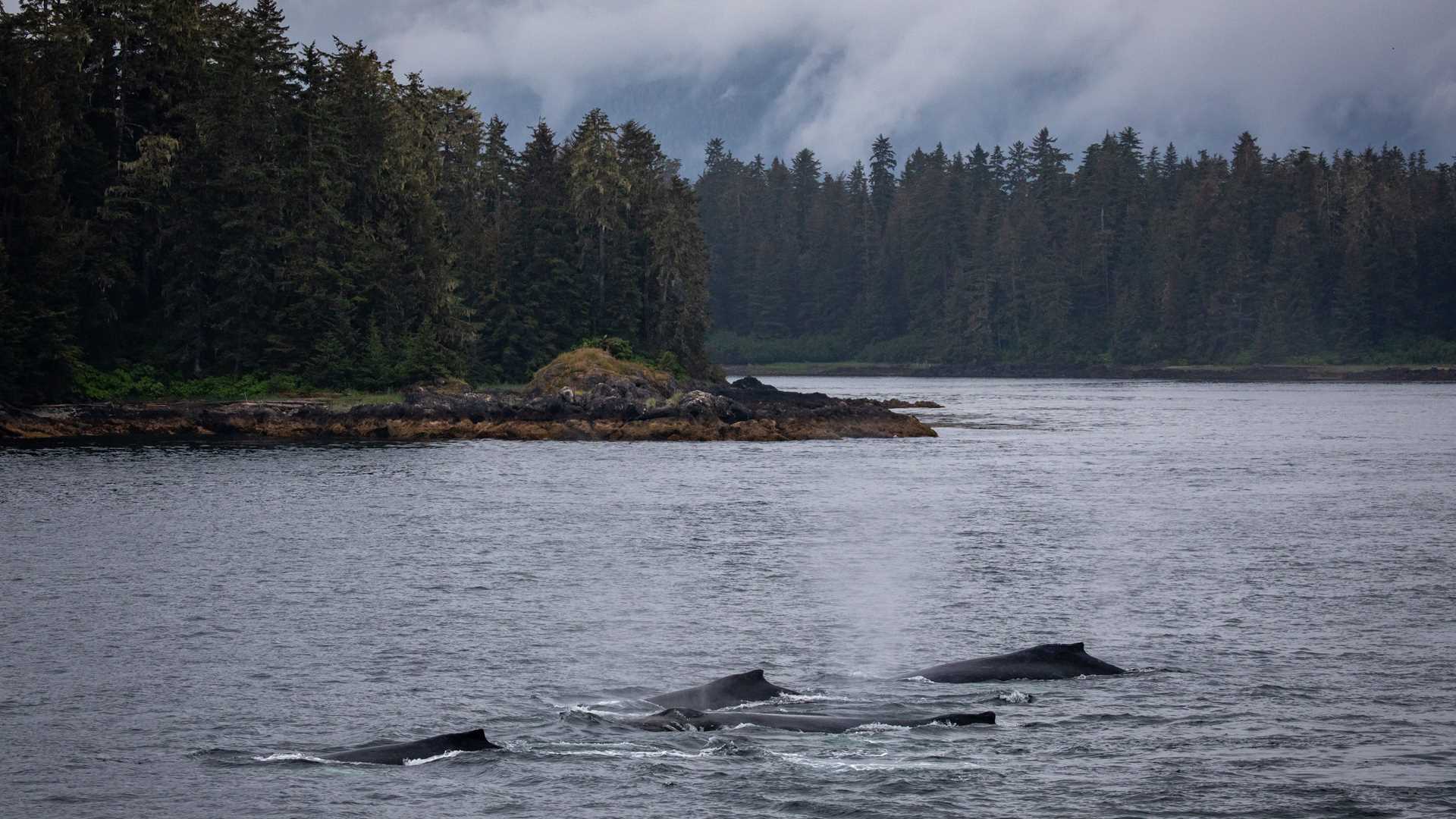 We began our day earlier than normal in the protected waters of Halleck Harbor in Skanax Bay. A dedicated group of adventure-seekers went ashore for a multi-hour bushwhack through the forest of Kuiu Island, which has one of the highest densities of black bears in Southeast Alaska. Soon, other hikers ventured out for forest walks on game trails and to explore the incredible intertidal zone of this area. We all returned for a delicious brunch on board National Geographic Venture before heading back out for more hikes and kayaking opportunities. After our young Global Explorers took the helm on the Zodiacs, we pulled anchor and looked for wildlife in Frederick Sound. Almost immediately, we came across a group of humpback whales bubble-net feeding, a perfect end to our afternoon!