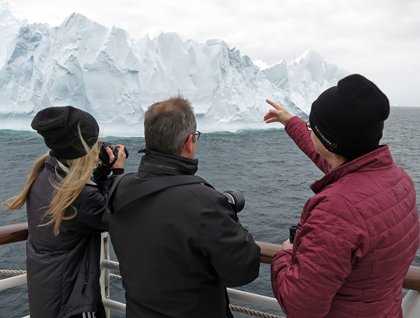 Some guests, who finished dinner early went to the bridge and were lucky to catch a brief view of a pod of killer whales passing the ship and disappearing into the ocean with swirling snow above and with blurry huge icebergs in the haze. Well, the more time you spend looking, the more you see.