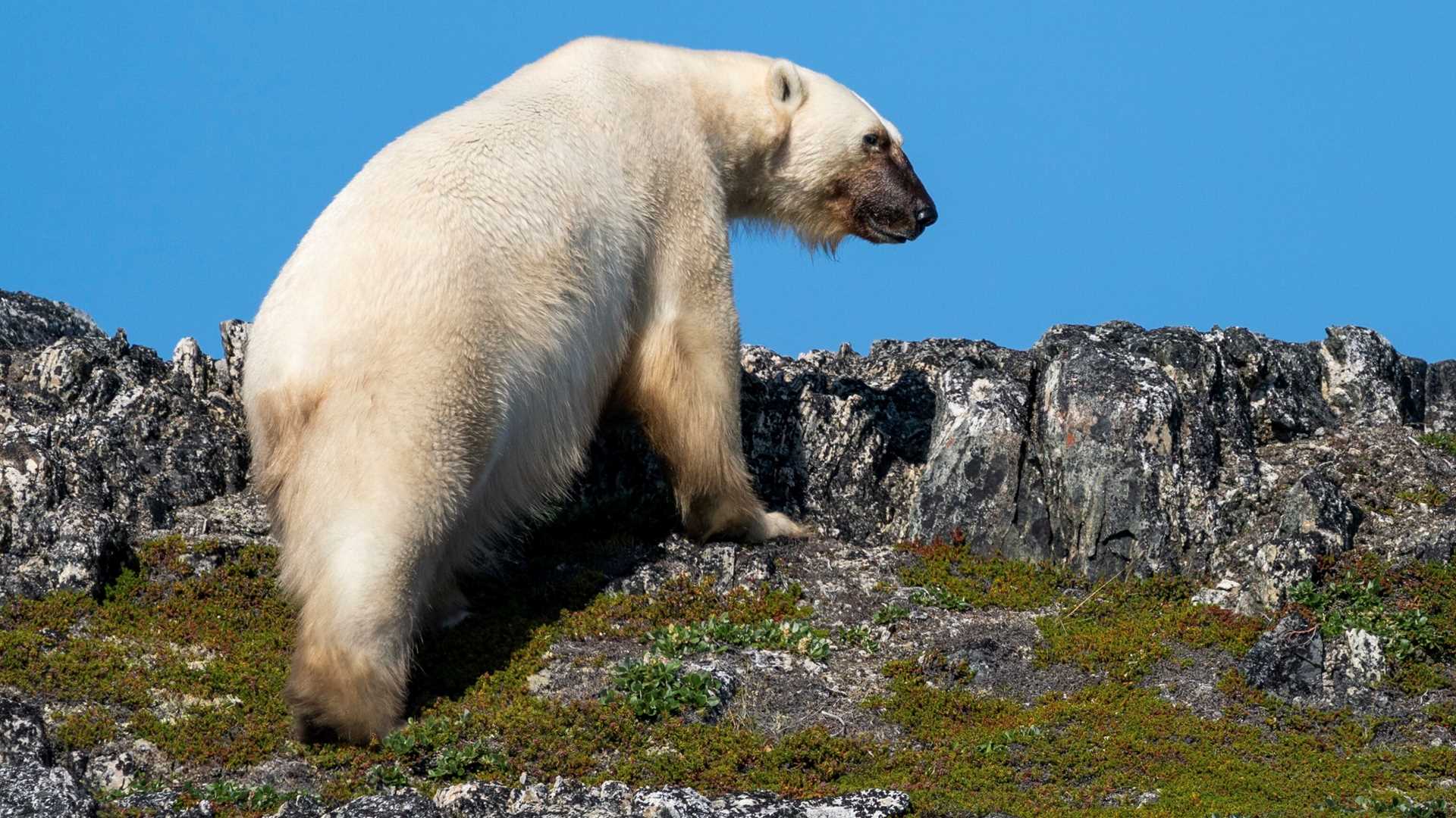 All afternoon, we sailed in sunshine as we explored the coastal islands. We squeezed through Mugford Tickle, which was not much of a tickle for us. A large cargo vessel might feel the shoreline graze its sides, but we had oodles of room. More bears prowled here and there, and a black bear foraged at a higher elevation. Our final bear of the day sat upon a tumbled, rocky cliff, looking down wistfully as we consumed hot dogs and beer on the deck.