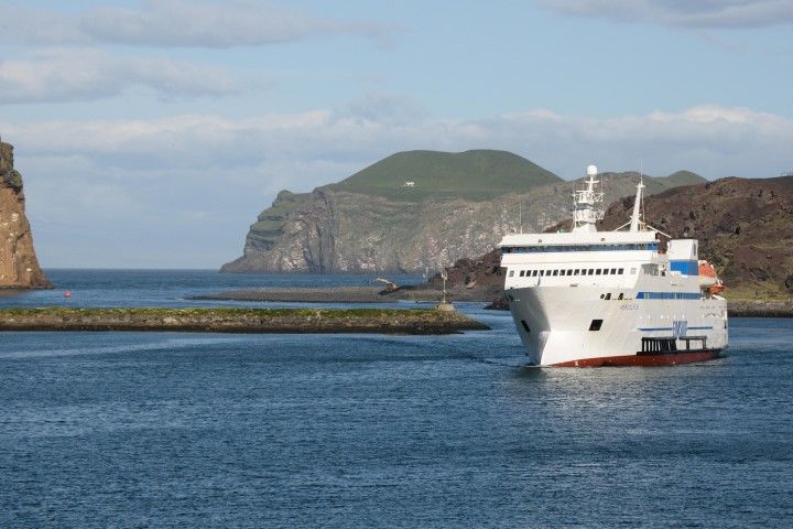 We sailed through the night and morning to Heimaey, the only inhabited island in Vestmannaejar Archipelago, (Westmann Islands). With the help of a local pilot we navigated through the narrow winding harbor entrance and pulled the ship alongside for our tours of the town. Heimaey is a beautiful island that almost lost its harbor when one of its mountains, Eldfell, erupted in 1973. The fast moving lava poured out into the sea expanding the mass of the island, much of the town was covered as well and it’s estimated 360 houses were covered in lava and tefra during the explosion and aftermath. Heimaey is rich in Viking and volcanic history, including a fascinating project called “The Pompeii of the North,” a project to excavate a few of the houses that were covered, resulting in the very fascinating Eldheimar museum built around one of the excavated homes. We had a beautiful day on the island, with lots of sun and fairly calm seas, making our visit to this remote island even more spectacular. Our afternoon concluded with a sail past Surtsey, Iceland’s newest island, which appeared out of the ocean during a 1963 underwater eruption. The eruption lasted for 4 years and is a wonderful research location for volcanists, botanists, and biologists studying the formation of land and succession of life on a brand new island unaltered by humans.