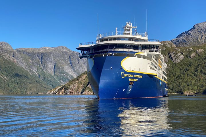 Just before dinner, National Geographic Endurance explored Trollfjord, a very short yet very narrow fjord. Entering this fjord gives the bridge team a chance to show off their navigation skills and take advantage of the ship’s incredible maneuverability. A visit to Trollfjord isn’t complete without bringing the ship right up to the edge of the sheer cliff face, sometimes even close enough to pick a leaf from a tree branch!