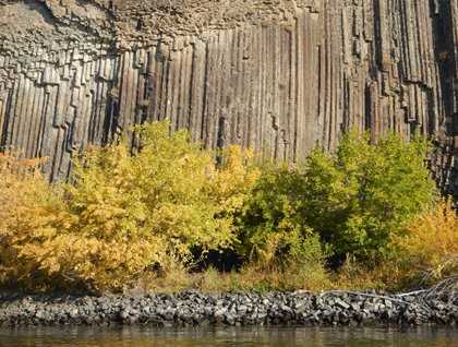 The jet boats headed up the Snake River past Lewiston and Clarkston into almost inaccessible Hells Canyon. As canyons go it’s a young one, only two million years or so, yet its deepest reach is deeper than Grand Canyon. We pushed further and further into older and older basalt rocks, the view at every turn a spectacle. A bald eagle lifted off and circled overhead. We passed blue herons, mergansers, and coots. Rocky Mountain bighorn sheep and mule deer grazed among the cliffs. We powered up rapids past the mouth of Salmon River to Eureka Bar and remnants of copper mining of a century ago. The run down through the crooked rapids was like a bobsled run.