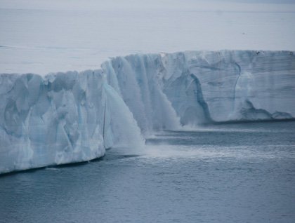 Instead of waiting for the fog to lift, we set our course north for the third largest icecap in the world (next to Antarctica and Greenland). Austfonna extends to over 8,120 km, and covers over 50% of the island of Nordaustlandet. A major part of the glacier is grounded, so it is no longer a tidal glacier as it appears to be seen from the ship. The thickness of the ice cap is up to 565 m deep, with an average thickness of about 300 meters.