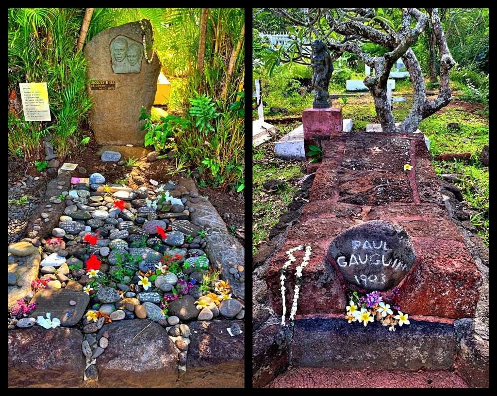 For the rest, we had quite a time visiting the town of Atuona. This was the final home of the famed French painter Paul Gauguin and to Belgian singer Jacques Brel. Both have been buried in Calvary Cemetery overlooking the town. We concluded our visit to town with a stop in the cultural center, which mostly portraits the life and artwork of its most famous inhabitant, Paul Gauguin.