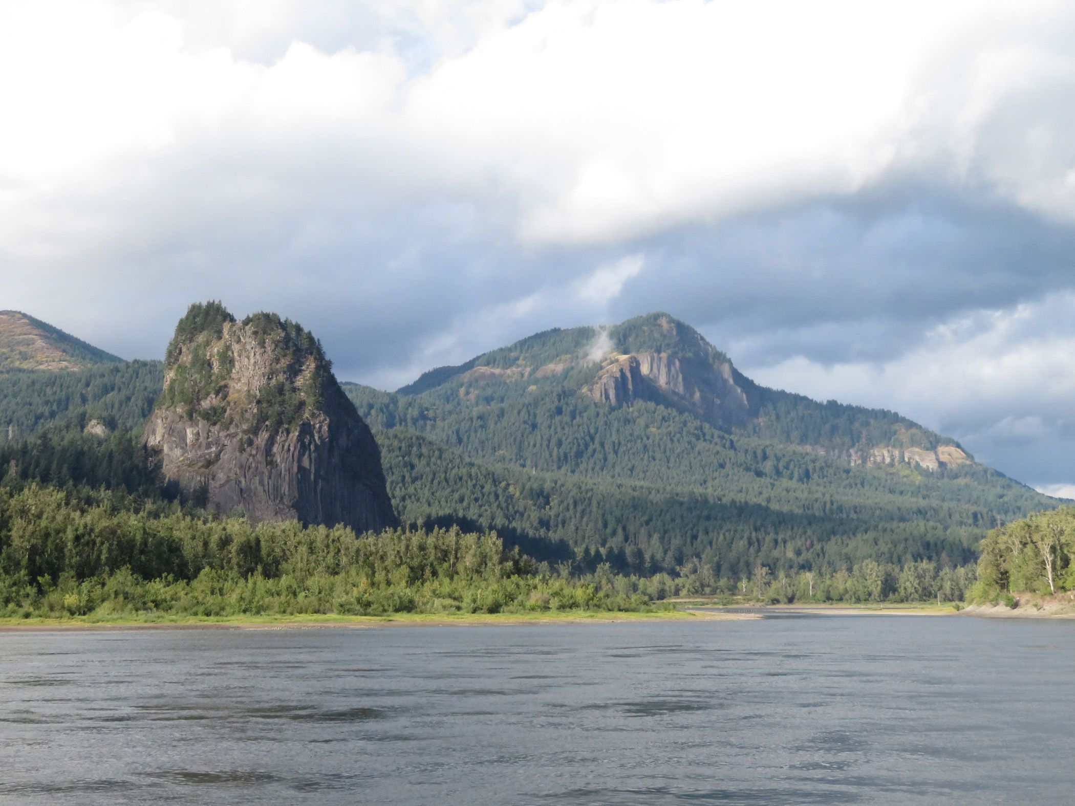 We spent the afternoon cruising down the Columbia River, in beautiful weather, listening to the historian’s “The Truth about Lewis and Clark, Part II,” and learning about cameras. We negotiated Bonneville Dam, the first dam constructed on the lower Columbia (1937) and the last of the eight locks and dams we’ve traversed on the Snake and Columbia Rivers. The disastrous fires in the Columbia River Gorge last month prevented us from stopping at Multnomah Falls, but we viewed as much of it as we could from the ship. We are headed for Astoria, Oregon, and another day of new adventures.