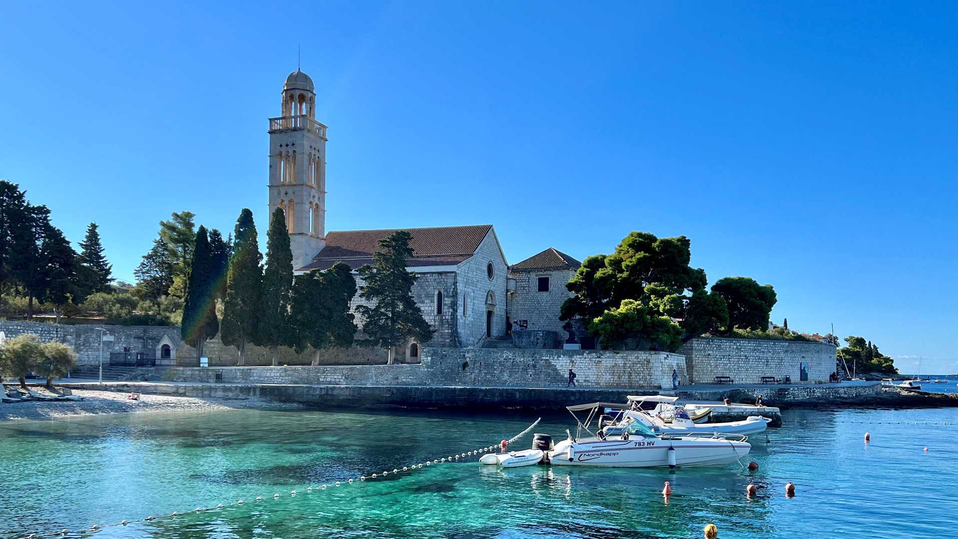 It’s hard to believe it is the last day of our magical cruise along the Dalmatian Coast. A visit to the beautiful island of Hvar, the “lavender capital” of Croatia, was the perfect way to end our voyage. Sea Cloud slipped through the narrow channel between the Pakleni Islands and dropped anchor just in front of the old Venetian harbor of the town of Hvar. We tendered into the pier for an early morning walking tour of this delightful town full of Venetian-inspired Renaissance palaces with pointed trefoil windows and ground-floor loggias. Cafes, bars, and lavender stands lined one side of the quay, while yachts and catamaran ferries from the Split jostled for position on the other. Our guides took us along the seawall and out to the Franciscan Monastery to see their little physic garden with its 500-year-old cypress tree and the impressive 16th century painting of the “Last Supper” that dominates the monk’s refectory. This magnificent work was done by a Venetian artist of the school of Paolo Veronese. The artist was shipwrecked on the island and nursed back to health in the monastery. We wound our way back to the main square, then climbed up through the narrow Porta Maestra that was once the main entrance to the fortified section of the town. We stopped in front of the small Benedictine convent, where five cloistered nuns still make lace from the fibers of the agave plant. After a visit to the basilica of St. Stephens on the main square, some of us fanned out on our own to explore the alleyways leading up to the Venetian fortress that protects the city, while others chose to buy a few lavender products or just sit and enjoy a cool drink in one of the many bars along the quay. All too soon, the tenders arrived to shuttle us back to the ship so we could partake in the famous “parmesan wheel” pasta feast on the Lido Deck. As we moved away from Hvar, the captain had the sailors go aloft for one last afternoon under sail.