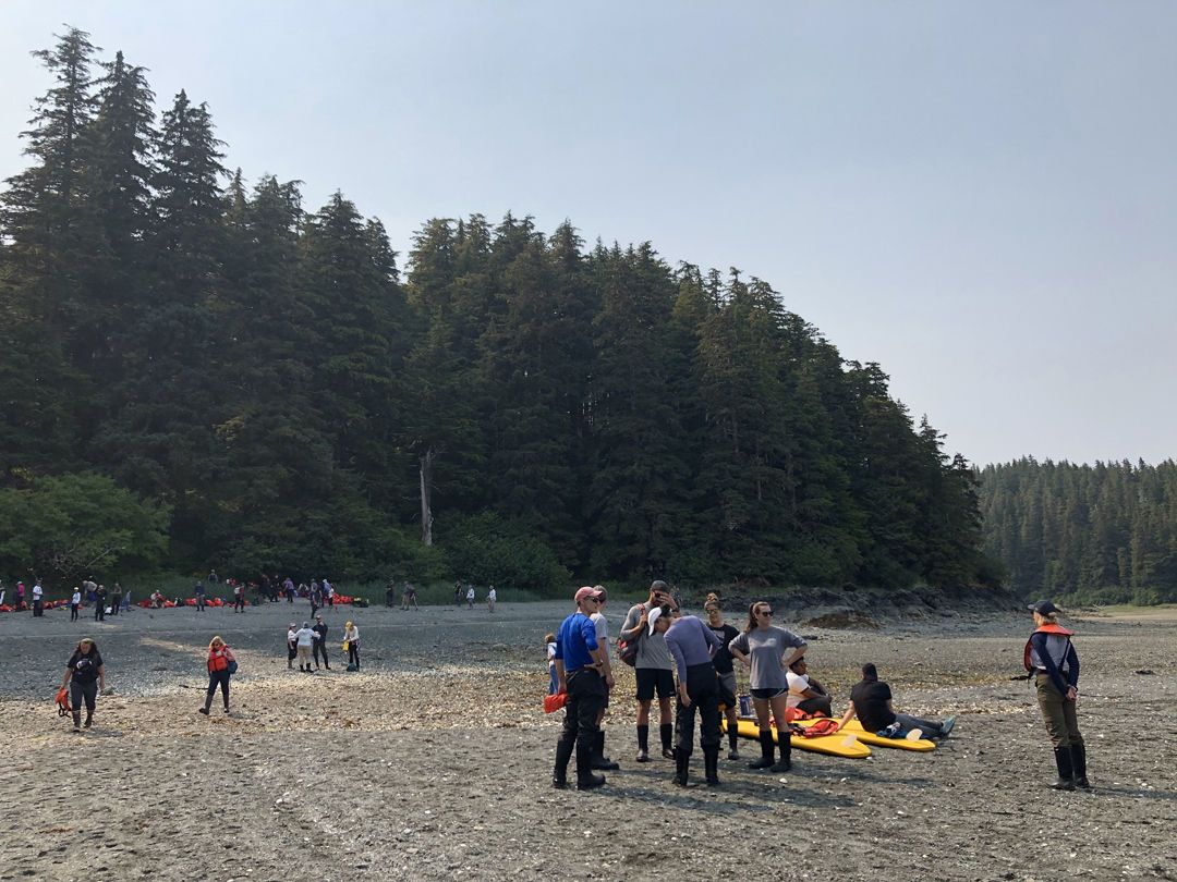 National Geographic Quest arose amidst light clouds within the protected waters of Ushk Bay. This area is known for a salmon stream and yields plenty of opportunity for kayaking and exploring the vast meadows of its inner waterways. On this day’s occasion, guests were able to hike and paddle their way along the coast of Ushk Bay and witness firsthand the life cycle of Pacific salmon making their way upstream. As we transited through Peril Strait, we were lucky to see humpback whales. These immense mammals were “lunge feeding” very near our ship. Being able to witness this event was unique for guests and staff. Lunge feeding is process through which individual whales push their gaping mouths through the surface and collect any fish or planktonic invertebrates in the process. Witnessing this behavior was truly a remarkable experience for all. We will cherish this moment for a lifetime.