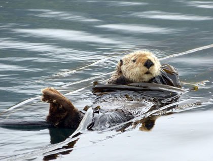 We boarded our landing craft to cruise for closer views of the wildlife. Most of the sea otters were wary of our approach (perhaps a carryover from the era of exploitation), but the otter seen above wrapped itself in kelp and showed no concern. (Okay—cute wins.) We began to see Steller's or Northern sea lions. Some of our cruising guests wondered why we did not linger for photos, but our drivers knew that more awaited us. On a rock right at the entrance where tidal water streams by, there is a haul-out of these massive pinnipeds. They are much larger and lighter in color than the more familiar California or Galápagos sea lions that many have experienced on earlier Lindblad-National Geographic expeditions. On land, they roar (or some would say belch) rather than bark. A haul-out is a place where non-breeding animals assemble, mostly young males waiting to grow large and strong enough to compete for space on a breeding colony and the harem of females that comes with the territory. The way to grow large is to eat, and they alternate between feasting on fish brought by the incoming tide, and lounging on the rock when the tide is falling. We watched many a fish being ripped asunder in their feeding frenzy, the scraps quickly devoured by the attending escort of gulls.
