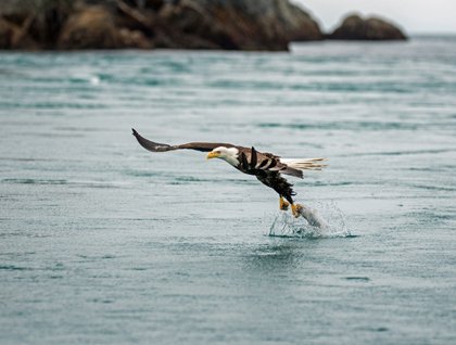 It’s been an action packed day out here in Southeast Alaska. Our morning started out at the Inian Islands, an unbelievable place to spot wildlife. These islands are located in Cross Sound, one of the few narrow inlets where water from the open Pacific Ocean enters the Inside Passage here in in Southeast Alaska, which brings an abundance of life to this very narrow entryway. When the tides come rushing through this passage, there is significant upwelling, which stirs up nutrients from down below, along with a number of fish that find their way to the surface, making it the perfect location for hungry sea lions. We spotted many of these massive sea mammals diving down to catch halibut, cod, and rockfish, only to return to the surface and thrash the fish around until they are able to swallow it. Meanwhile, there were hundreds of gulls and eagles circling around trying to pick up any scraps that may escape from the sea lions’ mouths. It was an amazing spectacle, and one of the highlights of the trip so far.