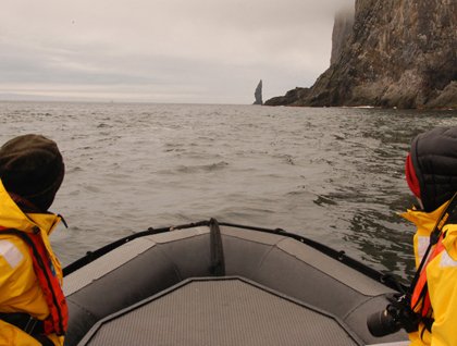 Early this morning, the National Geographic Sea Lion cruised slowly through Icy Strait, on her way towards her morning anchorage at the Hobbit Hole, just inside Cross Sound.  During the early morning hours our ship remained quiet, waiting for slack water to make the passage through the Inian Islands and into the quiet and protected waters of the Hobbit Hole.  Once inside, the Sea Lion anchored and was ready for morning activities.  Icy Strait connects Cross Sound and the Gulf of Alaska with the waterways of Southeast Alaska.  Through the tiny entrance of the Inian Islands, all the tidal waters entering the north end of Southeast Alaska pass (tides sometimes of over 25 feet) pour around these islands often creating standing waves.  Because of this extraordinary and enormous flushing and upwelling of salt water, it is a smorgasbord of food for a myriad of predators who anxiously await the feast that is presented every six hours during the tidal changes.  During this early summer season, added to the tidal upwellings, the seasonal salmon are returning to spawn.  The salmon are moved by the very same tides and currents, which provides yet another large food supply for all those ready to harvest!  Steller sea lions, bald eagles, killer whales, a variety of gulls, sea otters, and harbor porpoise are all present and benefiting from the abundant nutrients provided by the northern waters of Southeast Alaska.