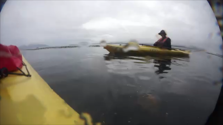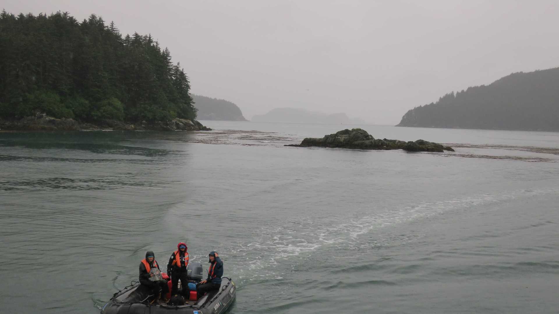 Our naturalist Steve Morello says that rainy weather brings the wildlife out, and Thursday did not disappoint. Before our breakfast of smoked salmon and toad in a hole, the young naturalist aboard spotted a humpback whale, porpoises, and bald eagles off the port deck. We dropped anchor amongst the Inian Islands, within one of the world’s largest protected wilderness areas. Our morning zodiac tour brought us directly face to face with a lively population of Stellar sea lions, who frequent the area for its rich population of salmon returning to the islands to spawn. Sea birds such as mew gulls and cormorants are gathered around the sea lions to feast on the off catch. The sea lions are very curious and popped their heads up while gathering around our boat to see what we were up to. Two males on the rocks were vociferously engaged in a dispute. A short distance away, a population of sea otters was well camouflaged amidst the kelp while feasting on a sea urchin brunch. The rain also brought good fortune. As our group was leaving the area, one of our shipmates spotted the blow of a small humpback whale, just fifty feet off starboard. The whale was gracious enough to present us with a fluke before diving down below. Before returning to the ship, we paid a visit to the Inian Island Institute, a sustainable ecology and experiential education center in Hobbit Hole. Afternoon hikes at Fox Creek on Chichagof Island allowed us to explore the area on foot. Some of our group went on a photo walk and others took a kayak tour of the bay. We discovered perennial bear tracks near a salmon stream as well as a scratching tree and a salmon abandoned in the woods. These tracks, sometimes named “Hot Feet” locally, represent a trail where bears return to step in each other’s footprints. Naturalists think that the hot feet may serve as a pheromone based communication system similar to those that dogs use on their habitual walking paths. After our return, our two Grosvenor Teacher Fellows, Kacy Lebby and Elisabeth Gambino, worked with our young naturalists to microscopically examine the plankton samples collected at Kelp Bay last night. The young naturalists used ship based texts to catalogue and illustrate the zooplankton identified from the plankton tow and presented them to the ship during the daily recap. The evening came to an enjoyable close when local author Kim Heacox came aboard to regale us with songs stories, and to talk to us about his books.