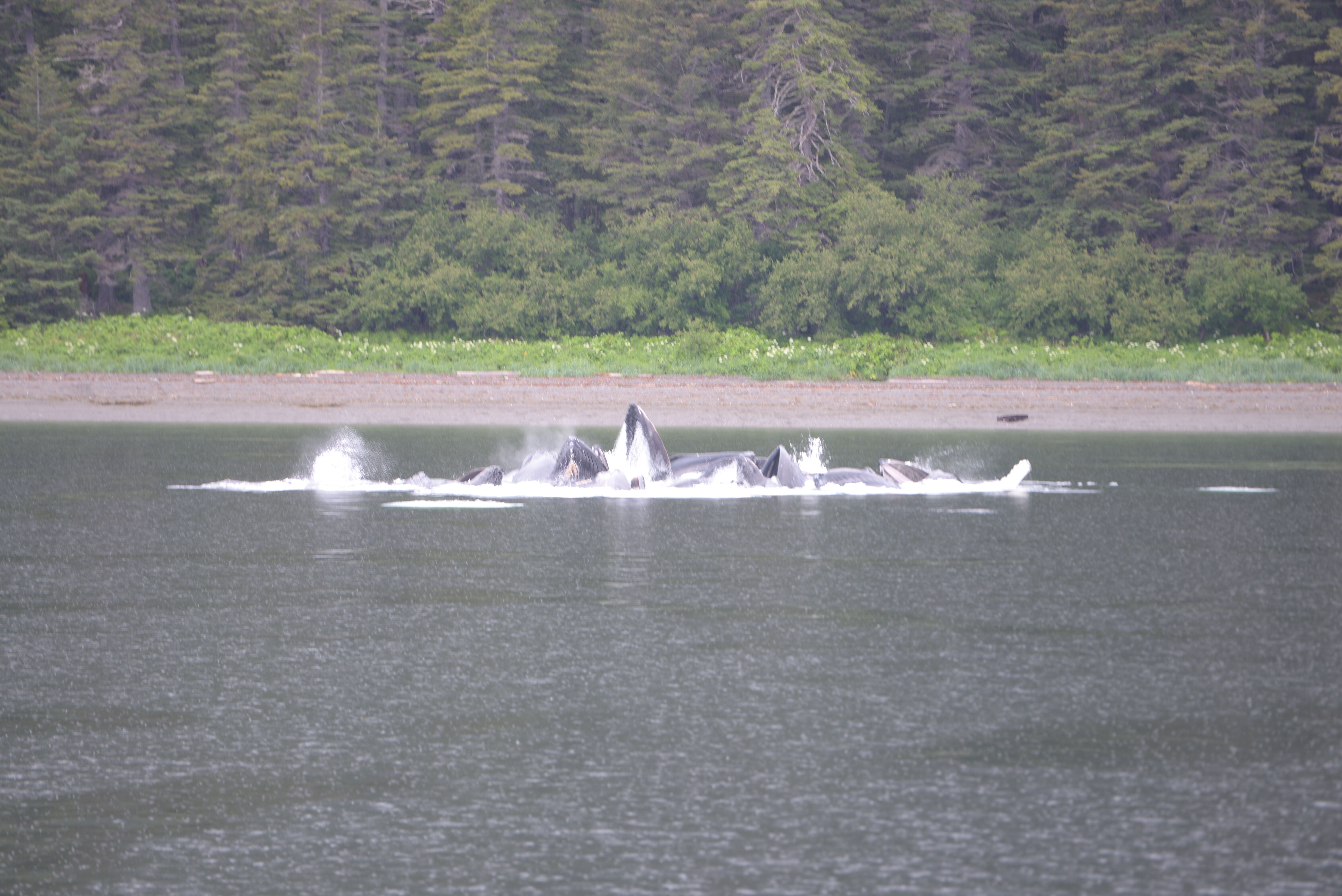 As we repositioned towards Fox Creek, we were diverted by a humpback calf repeatedly breaching, lobtailing, and pectoral fin slapping. It was having a grand time playing while its mother dove for food, and we had a grand time watching it play. Afterwards we headed for Fox Creek for afternoon activities. Hikes through the intertidal, meadow, forest, and muskeg—a smorgasbord of ecosystems—provided delightful flowers, leaves, creatures, and views. In the meadow, we found chocolate lilies, few-flowered shooting stars, Unalaska paintbrushes, beach peas, coastal strawberries, dwarf nagoonberries, yarrows, fireweeds, and even white-bog orchids. A wonderful overview of the flowers of Alaska. Ascending through a tranquil old growth forest of Sitka spruce with devil’s club throughout the undergrowth led up to a tiered muskeg. From the second tier, we could see sweeping views of the muskeg below, the old growth forest, the ocean, and the mountains of Glacier Bay beyond. At the same time, kayaking and paddleboarding provided relaxation and views of sea stars and other creatures while enjoying sunshine and a light breeze. It was an amazing day full of activities as well as flora and fauna.