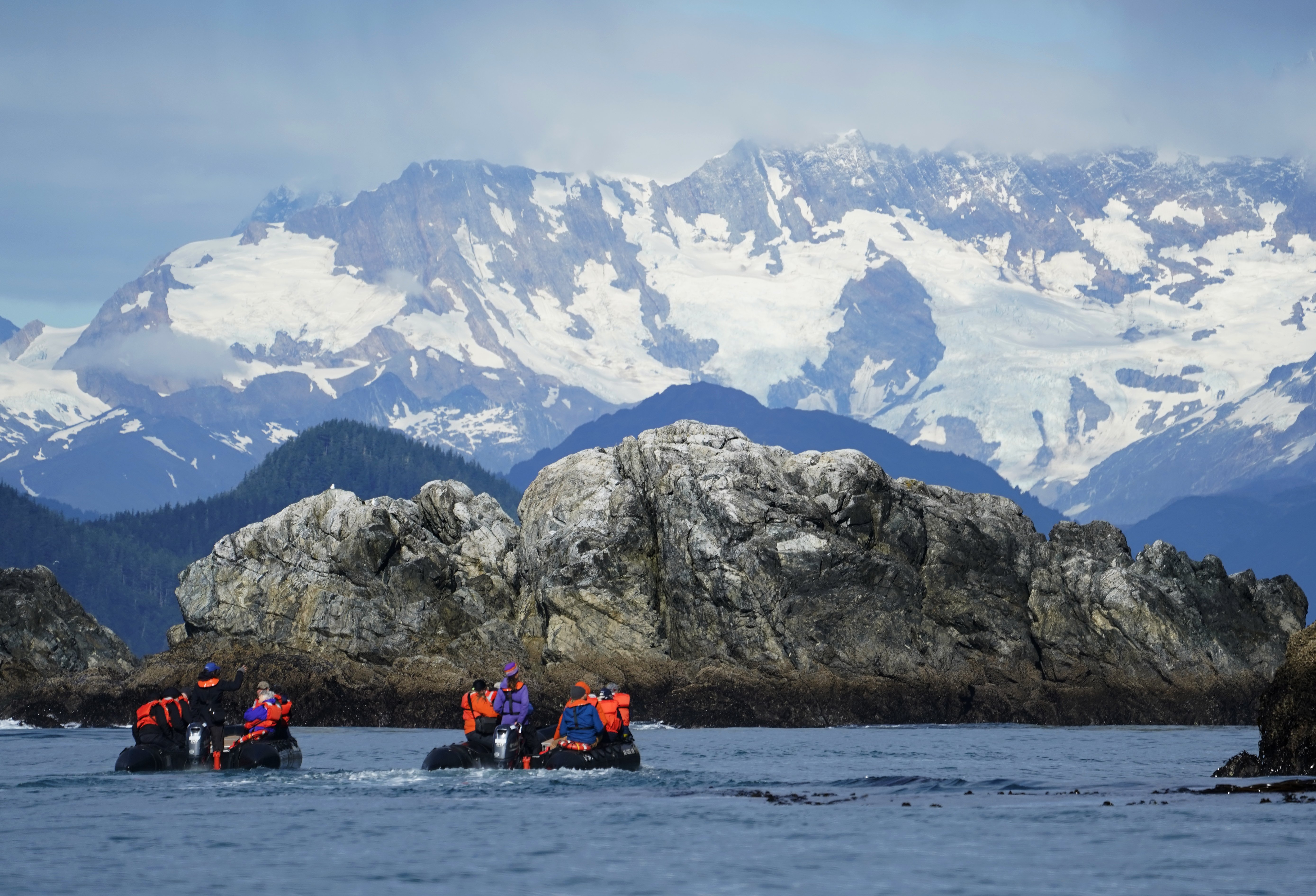 After lunch, the expedition continued to George Island where there were a variety of hikes through the forest and kayaking from the beach. The afternoon ended with some hot cider and an opportunity to take a “Polar Plunge” in the Southeast Alaskan waters.