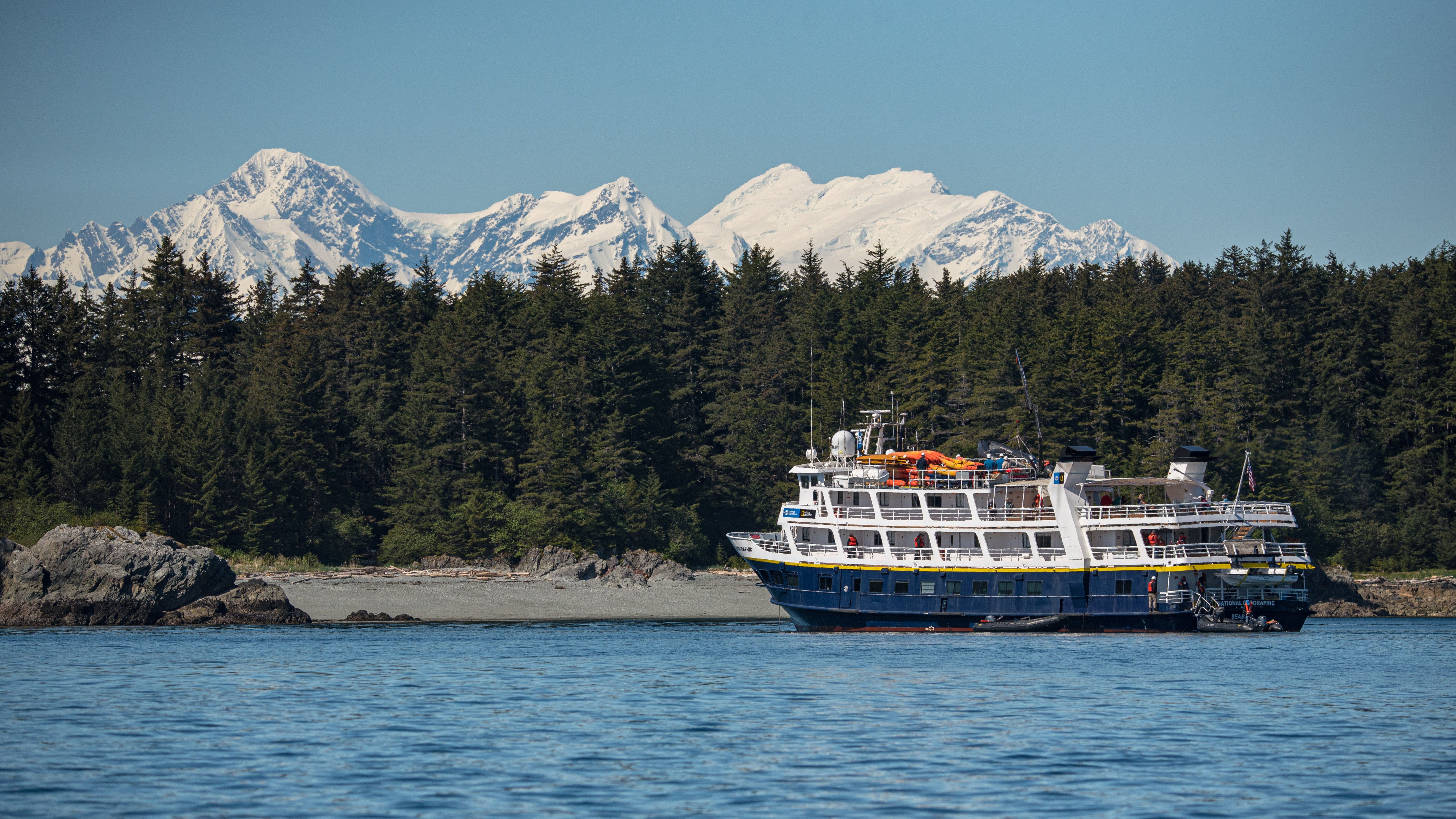The voyage continues. After navigating through the Lynn Canal and then west to where the Cross Sound and the Gulf of Alaska meet, we anchored in Granite Cove, where our adventures began. In true Lindblad form, we rode Zodiacs from National Geographic Sea Bird to George Island, a former outpost during World War II. Just as we stepped onto the rocky shore, the clouds parted, and sunshine beamed upon us as if to welcome our exploration. Groups set out by foot and by kayak to take in the sights. We found a multitude of colorful lichens in the forest, seaweed on the beach, and sea stars in the tidal zones. No matter where we explored, we were bound to get great photos. Back on board, there was a buzz of chatter during lunch as we compared notes on what we saw. A quick repositioning of National Geographic Sea Bird brought us to “the Hobbit Hole” in the Inian Islands archipelago. Here, the color of the water is a striking teal. It’s the only entrance for the Pacific Ocean to pour nutrient-rich waters into the northern reaches of Southeast Alaska, so the chances of seeing marine mammals and seabirds are good. The afternoon Zodiac runs did not disappoint. We saw sea otters, harbor seals, rhinoceros auklets, and bald eagles…oh my! As we headed back to the ship in our Zodiacs, a light, cool drizzle began and gave way to a brilliant rainbow, uninterrupted by the buildings, traffic, or crowds we’re accustomed to. Lucky for us, we have a couple more days for moments like this one on our floating home.