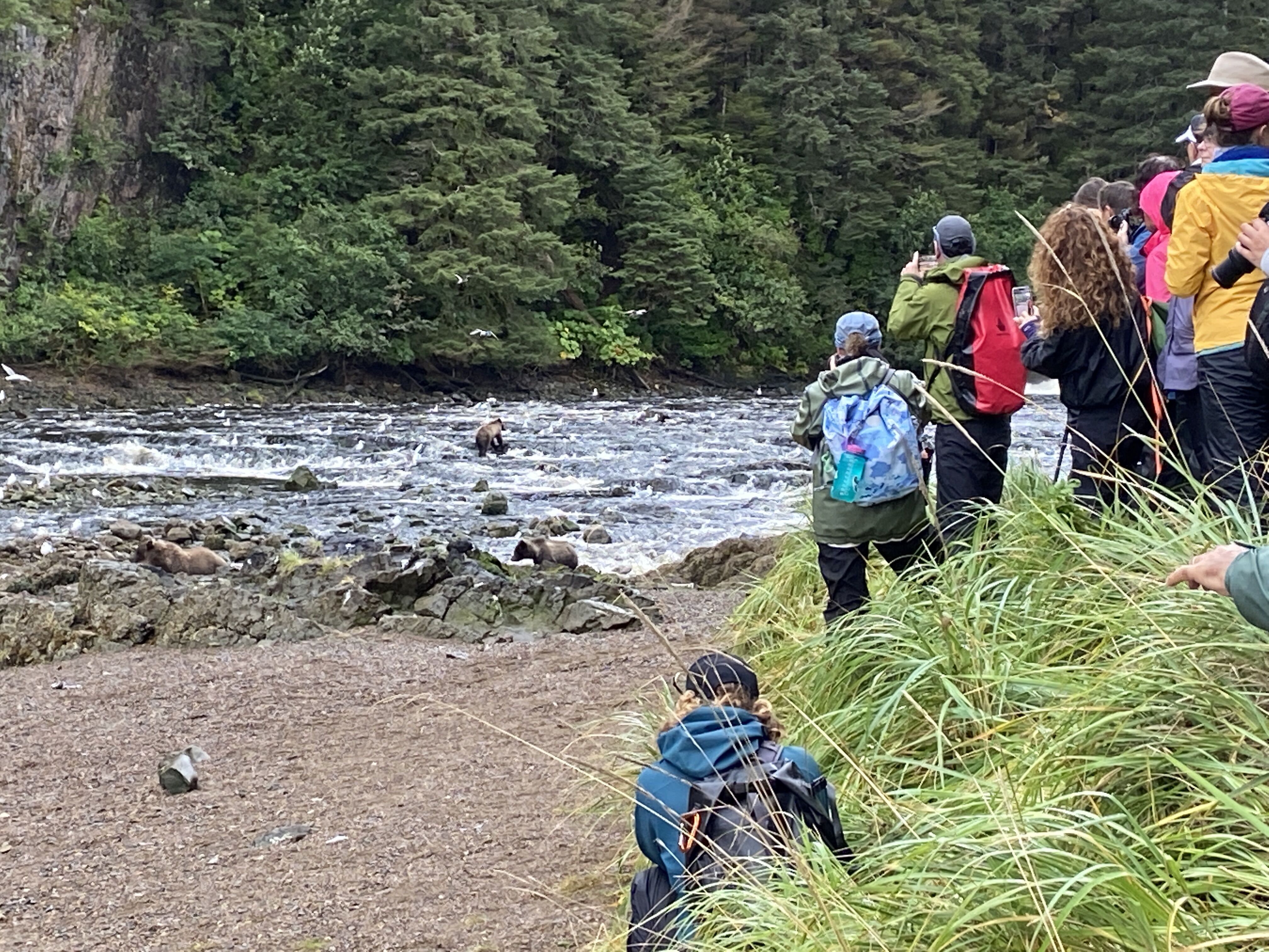 Continuing down Inian Pass we encountered an incredible abundance of humpbacks, harbor porpoises, bald eagles and sea lions feeding in the churning waters of a changing tide. Glimpses of the tallest coastal range in the world provided quite a backdrop and then, like icing on the cake, orcas arrived! Tall dorsal fins swam amongst our boats and with a 360-degree view of all things that make Alaska so special, we truly felt like we were in the palm of nature’s hand as we revolved ever more deeply into the current of its chaos and order.