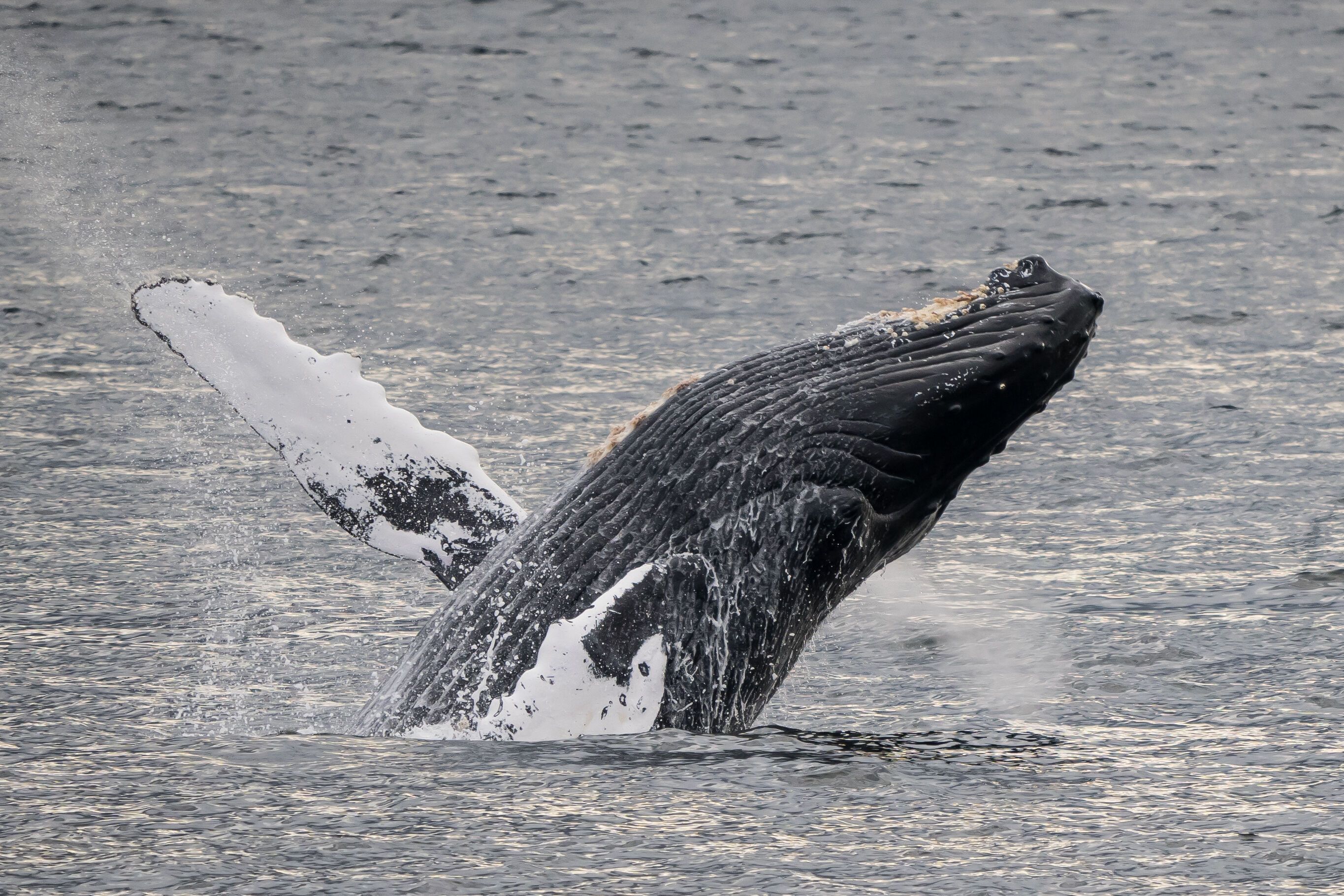 After breakfast we launched on the first outing of the day, cruising in our small boats along the shores of the Inian islands. Steller sea lions swam alongside and their presence teased us for all that was about to unfold. Approaching a rock in turbulent waters, sea lions of varying sizes were perched high and dry on a haul-out, providing us stellar views of this largest species of eared pinniped. With the ability to rotate their pelvis (unlike seals) these animals are quadrupeds out of water and use the rocks around Cross Sound to rest.