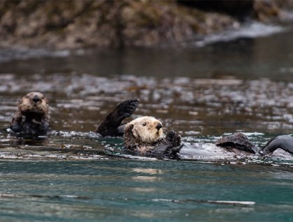 This morning the National Geographic Sea Lion arrived at Icy Strait, one of the main entrances of the Gulf of Alaska. A sea otter greeted us as we sailed along the Idaho Inlet. The ship stopped briefly, so onlookers drinking their morning coffee could watch the otter rolling over and over in circles before them. After a few moments, we left the adorable sea otter and continued to our destination.