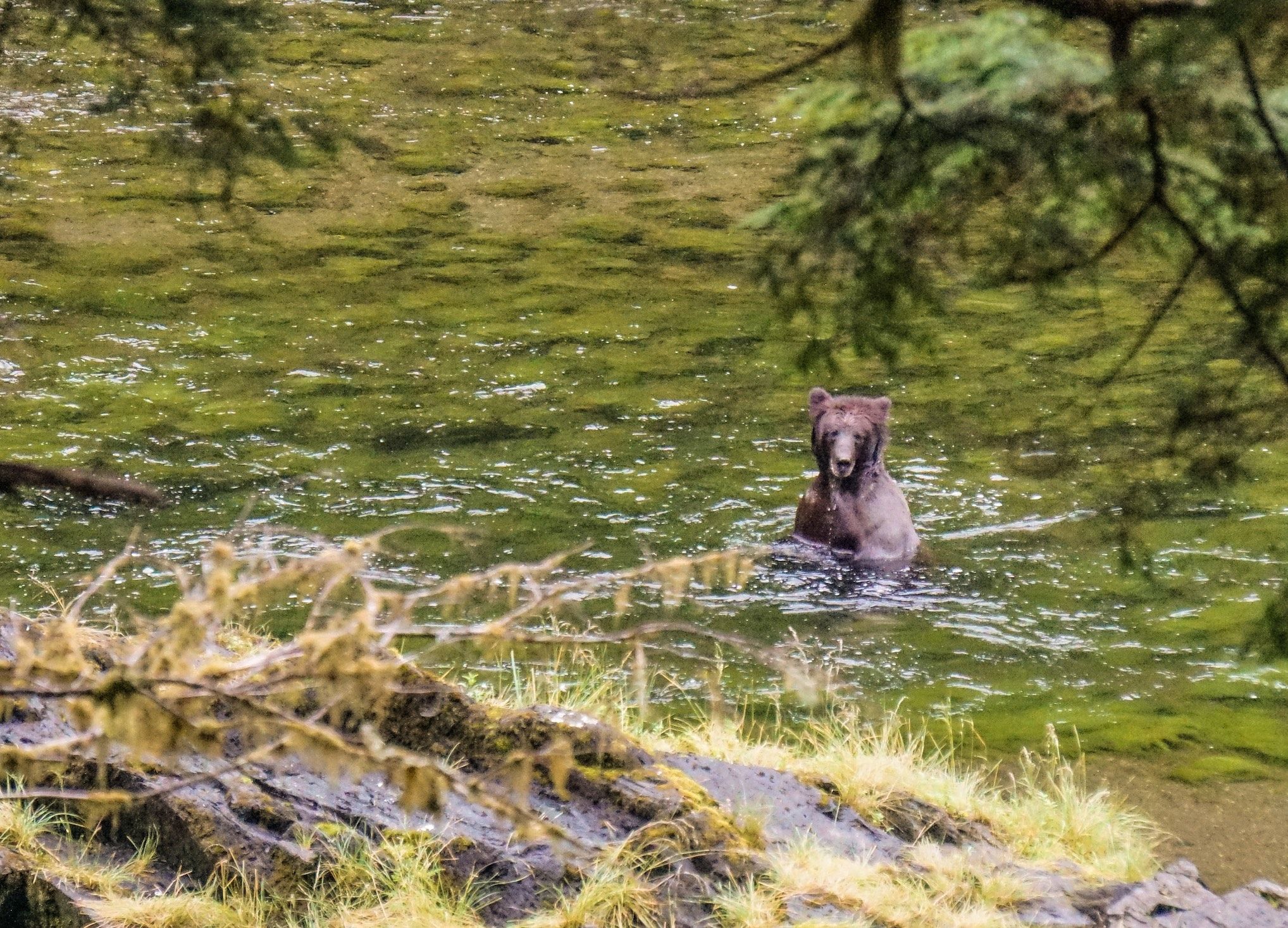 After exploring the glaciers and open waters of the northern Inside Passage, we sailed south through the night and returned to the starting point of our journey, Baranof Island. This island, along with Admiralty to the east and Chichagof to the north, is home to one of the highest densities of brown bears in the world. To search for evidence of the bears as they begin their yearly salmon feast and continue our exploration of the temperate rainforest, we anchored in Kelp Bay to kayak and hike the shoreline throughout the morning. Later in the afternoon, we welcomed Dr. Andy Szabo of the Alaska Whale Foundation to learn more about ongoing research taking place in Alaska on the unique bubblenet feeding behavior we witnessed earlier in the trip. Only in Alaska can you experience the forest, salmon, bears, and whales all in one day.