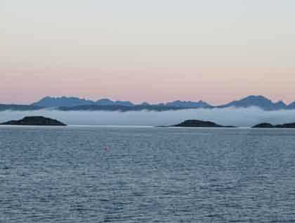 As the sun rose over the Knoydart mountains, Lord of the Glens sailed away from the mainland towards our morning destination of Eigg. An Sgurr, the “prow” that prominently marks Eigg, rose before us under cloudless skies. The clear, sunny day was a gift in this summer of rain and wind. We enjoyed sightings of gannets, guillemots, and even a minke whale (seen by just a few of our group) in the calm sea.