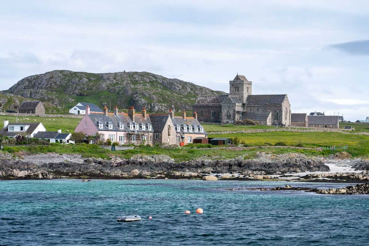 It was a cool, bracing start to the day but we had brilliant visibility as we slipped our moorings in Oban and made for the Isle of Mull, one of the largest of the Inner Hebrides and one with an exceptionally long, indented coastline. It is an island celebrated for its wildlife—golden and white-tailed eagles, shorebirds, and rich offshore marine life, including minke whales, an orca pod, and seasonal basking sharks. We disembarked at Craignure and drove in a diagonal across the island, along a single-track road with passing places, to Fionnphort where we met the ferry for Iona.