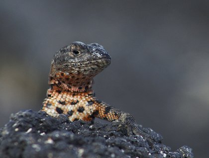 During the afternoon we had a dry landing at Punta Espinoza, the only visitor site of the island of Fernandina, where we encountered hundreds of large marine iguanas basking under the sun and beginning the breeding season. Several of these male marine iguanas were extremely territorial, performing some vicious reptilian fights over territory. Flightless cormorants and a small colony of Galapagos sea lions were also spotted along the shoreline.