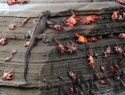 We soon left our morning site and navigated to Fernandina Island, the youngest of the Galapagos. We had a dry landing at the only visitor site on this uninhabited island, a place known as “Espinoza Point”, where a large number of marine iguanas were sitting right in the middle of our trail. During our hike we spotted large colonies of marine iguanas, a few flightless cormorants resting within the few dry areas left by the pretty high spring tide we had on this island (we haven’t experience such a strong spring tide before).  We even found marine iguana eggs washed up on the sand from their nests. Fernandina offers us the opportunity to imagine what it was like back in time, to the remote Galapagos where species have habituated and developed in abundance within their ecosystems.  We certainly saw all of its wonders, including the large top land predator, the Galapagos hawk.