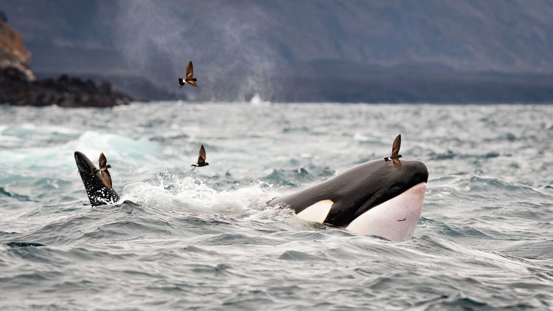 As we celebrated crossing the equator, I spied the telltale triangular fins of male orcas! Captain Gonzalo agreed that we could lower our fleet of Zodiacs, and off we went, hoping to be able to get in close to the orcas for photos and a good look at these stunning black and white creatures. Did we EVER get both good looks and great photos! We had a fabulous once-in-a-lifetime experience! We will send pictures to the scientists who are studying the orcas of the Pacific and will see if the very healthy, young male we followed, admired, and photographed is in their orca catalog.