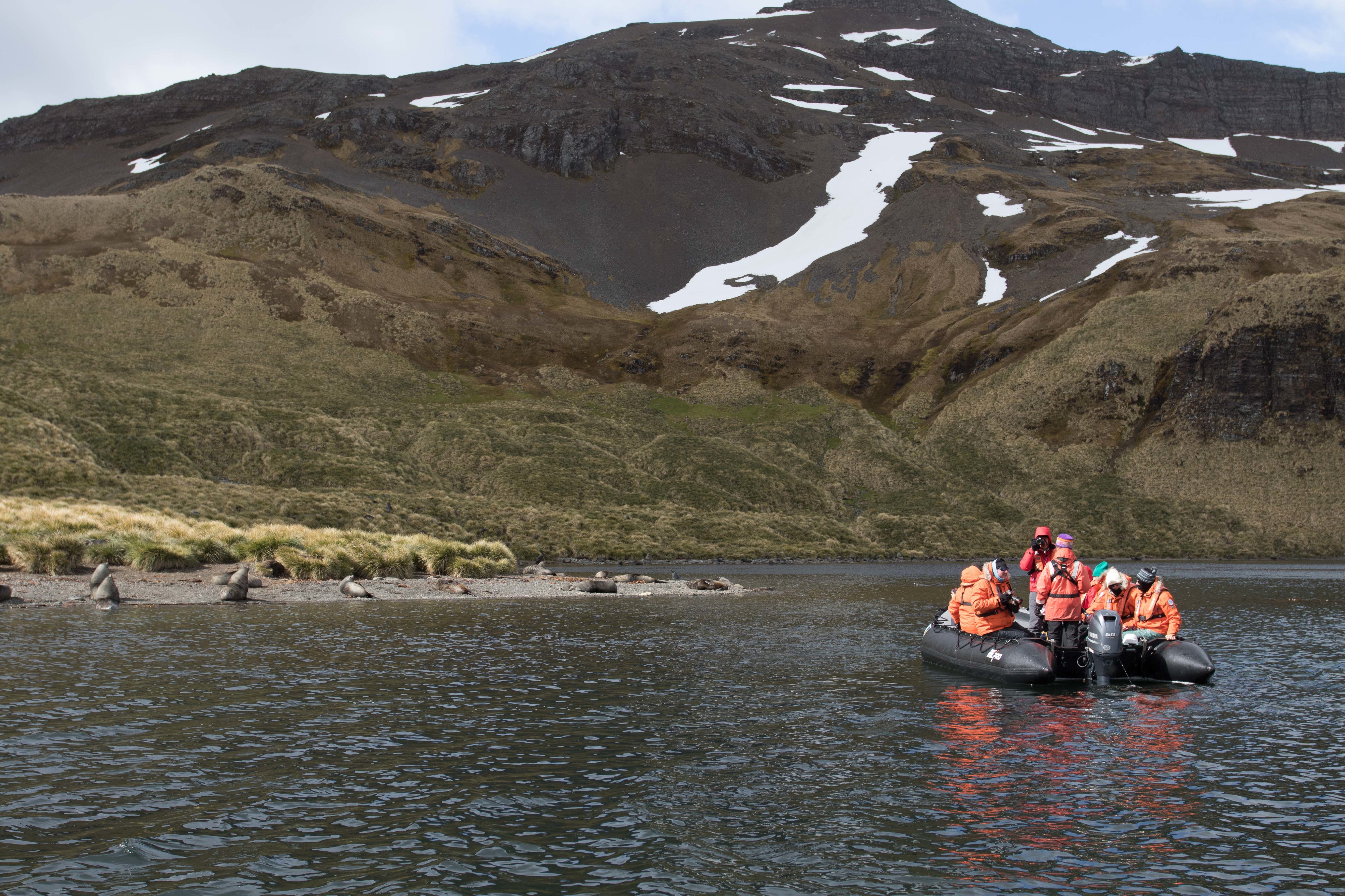 We crossed back into the southern hemisphere – all crowded together in the bridge to watch the GPS countdown – and then went on a fabulous Zodiac cruise along the base of the thousand foot high cliffs at Punta Vicente Roca. We found and photographed penguins, sea turtles, huge marine iguanas in territorial battles, fur seal and sea lions. Back to the ship we went, where we wiggled into our wetsuits and then headed out to snorkel with all these marine creatures plus many colorful fish. The water was amazingly – surprisingly – clear and calm, and the conditions were fantastic. We swam for over an hour and saw dozens of sea turtles, fast-moving penguins, and curious sea lions.