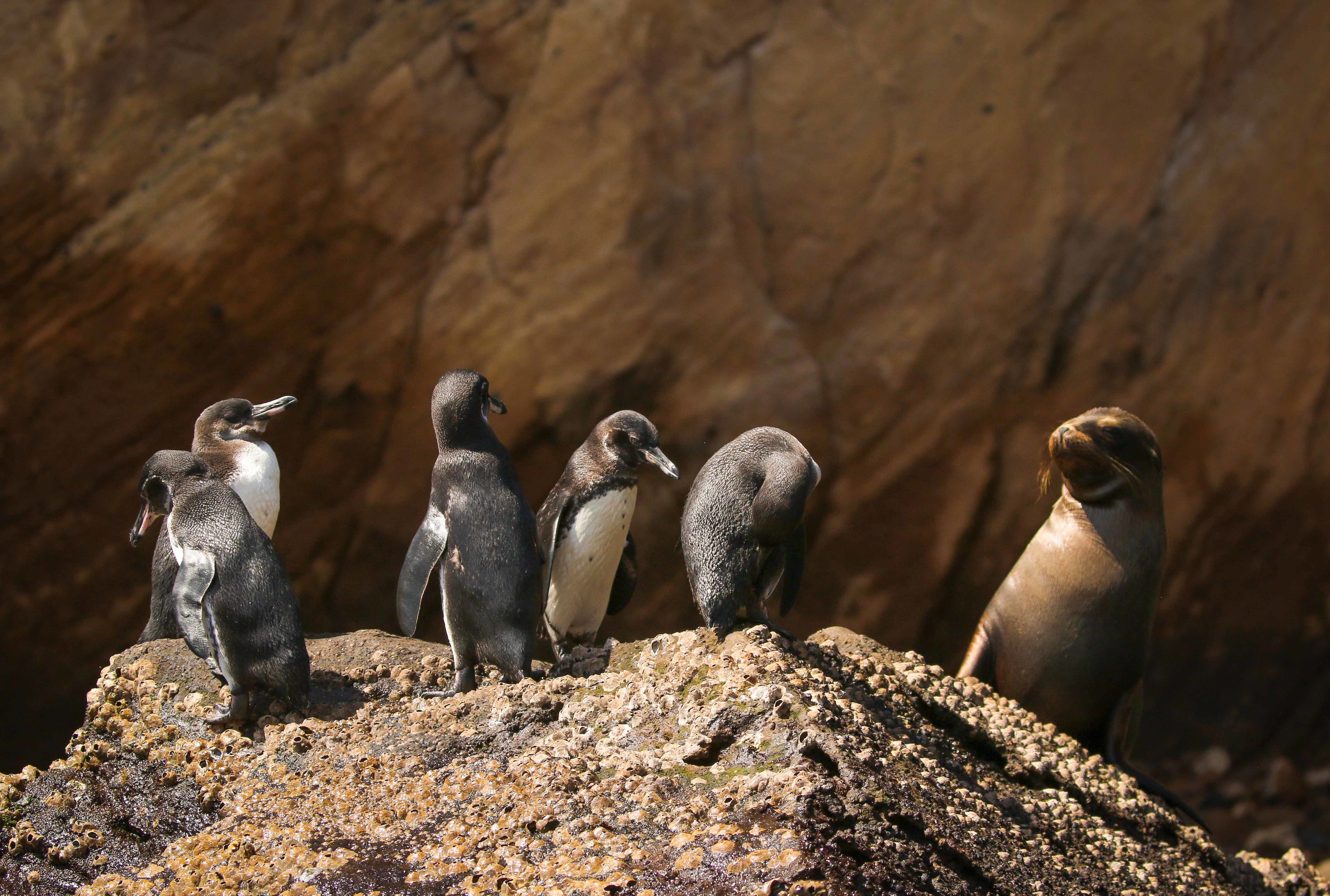 Our afternoon hike at Punta Espinoza was other-worldly. Reptiles rule in the Galapagos because they can get to oceanic islands on vegetation rafts that float far out to sea. Fernandina is one of the most active volcanic islands in the world and from a distance appears to be a huge, black mass of barren lava. But her shores are home to a myriad of wildlife species! Thousands of marine iguanas, which feed on algae from the sea were basking on the lava rocks and this afternoon we also saw Galapagos hawks, many Sally lightfoot crabs, flightless cormorants, and sea lions, several with tiny nursing babies.