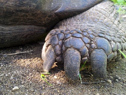 The Bolivar Chanel waters that separate Fernandina from Isabela Islands are perfectly calm this morning. The ship is surrounded by the impressive and majestic outline of the great volcanoes that reign in this part of the archipelago. Our destination is precisely at the junction of Darwin and Alcedo volcanoes. It’s a bay of a V shape where the waves funnel into and break at the shore on a black sandy beach. The dune is covered with turtles’ nests. Urbina Bay’s shoreline had been redefined in 1954 when an uplifting raised the sea floor 20 feet up, and exposed corals, barnacles and some mollusks to the sun. This sandy bottom became a suitable ground for the land iguana to dig their burrows into. Add luxurious vegetation that surprisingly blooms into a salty and siliceous soil, and it’s clear they found a perfect habitat to maintain a healthy population. We also find a good number of giant tortoises in this green and improbable oasis. The first one we observed was under a poison apple tree, dedicating its time to swallowing the extremely toxic fruit for humans, but a delicacy for them. This is a land of reptiles: turtles at the sea, tortoises on the trail, marine iguanas on the shore, land iguanas under the bushes, lizards, snakes, and flocks of finches inhabit this uplifted new land of opportunity. As mammals, we are all happy to have a refreshing swim at the beach after such a hot walk.