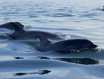 We anchored near the largest island of the Galapagos, where many species have learned to coexist within a very pristine ecosystem surrounded by giant volcanoes and a stunning landscape. While we boarded Zodiacs to go to shore, we spotted a pod of bottle-nosed dolphins. These creatures rode the bows of our Zodiacs for about 15 minutes, performing a great show for us. What a surprise!