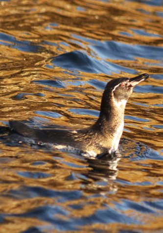 Some of us decided to go snorkeling, kayaking, or Zodiac riding while others took the chance to hike along tuff cliffs to see the famous Darwin Lake. On the Zodiac ride we found penguins, flightless cormorants, blue-footed boobies, and sea lions fishing. The light was just perfect for photography: the sunset reflected on the waves giving the water some golden colors contrasted by black and white penguins fishing along the shore.