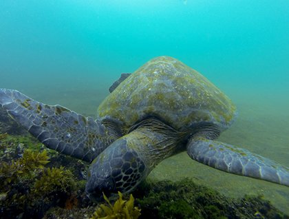 This morning we anchored at Urbina Bay, located at the base of Alcedo Volcano. Our morning expedition began with a wet landing that was fun and challenging for our explorers. Reaching the bay with Zodiacs allowed us to enjoy the green sea turtles that, from time to time, came to the surface to get some air.