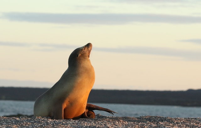 We woke up early in the morning as National Geographic Islander navigated along the northern part of Isabela Island. Slowly the sun appeared above the clouds surrounding Volcano Wolf. We spotted our first birds as Galapagos fur seals returned to shore from their night hunt. We enjoyed a great breakfast. Afterward, expedition leader Vanessa called everyone to the bow to celebrate as we crossed the equator. Our guests happily crossed the line. Approaching Punta Vicente Roca, the visitor site, we spotted Galapagos sea lions and a good number of ocean sunfish. The first activity of the day took place as we dropped anchor at Punta Vicente Roca. This is a spectacular geological site. The combination of the former volcano’s tall cliffs and the tuff cones formed later adds an amazing contrast to this unique visitor site. Our best tools for exploration, our Zodiacs, were lowered down, and off we went to explore the coast. We observed Nazca boobies and blue-footed boobies resting on the small ledges of the tuff cones. Galapagos sea lions swam close to our Zodiac, and Galapagos penguins rested on a broken piece of the tuff cone after feeding. What a wonderful sight! In a calm area, we found a good number of Pacific green sea turtles. The morning’s activities ended with snorkeling. Pacific green sea turtles, plenty of colorful fish, Galapagos marine iguanas and flightless cormorants surrounded us. It was a phenomenal experience! The ship was repositioned toward Fernandina Island. The youngest island of the archipelago, Fernandina is a highlight of our expedition. This island shows our guests the beginning of life. We observed animals thriving in the hostile environment. Pioneer plants like lava cacti grow on the lava fields, breaking down rocks little by little to create soil for the next generation of plants. Punta Espinoza is known for its huge colony of Galapagos marine iguanas. It is hard to distinguish the iguanas from rocks since they are so dark in color. On the other hand, colorful Sally Lightfoot crabs added contrast to the young, dark lava fields. We ended our walk as the sun was setting, returning to the ship with great memories. It was a fantastic day in the western part of the archipelago.