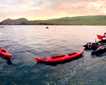 In the afternoon we sailed to the north in order to get to Tagus Cove. Unexpectedly, Fernandina volcano, which previously had volcanic activity, started expelling small dusky clouds of smoke. We kept close attention to anything that would signal more activity, but the giant volcano quieted again. Later we went snorkeling in the sheltered bay of Tagus Cove. It was a wonderful opportunity to swim with sea turtles, penguins and flightless cormorants (that became very interested in our group). Kayakers which also departed at the same time got to share this experience, but from above the water! The day ended with a beautiful sunset in between volcanic landscape.