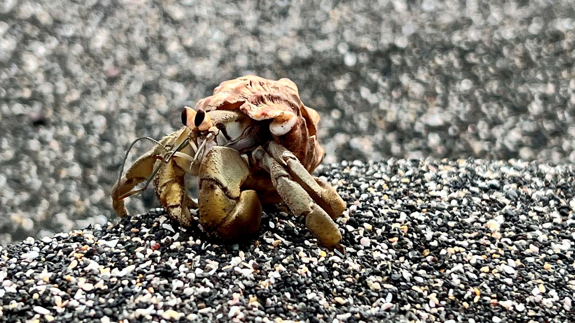 Photo caption and photographer: A semiterrestrial hermit crab exploring the sandy area of Urbina Bay. Photo by Paola Luque